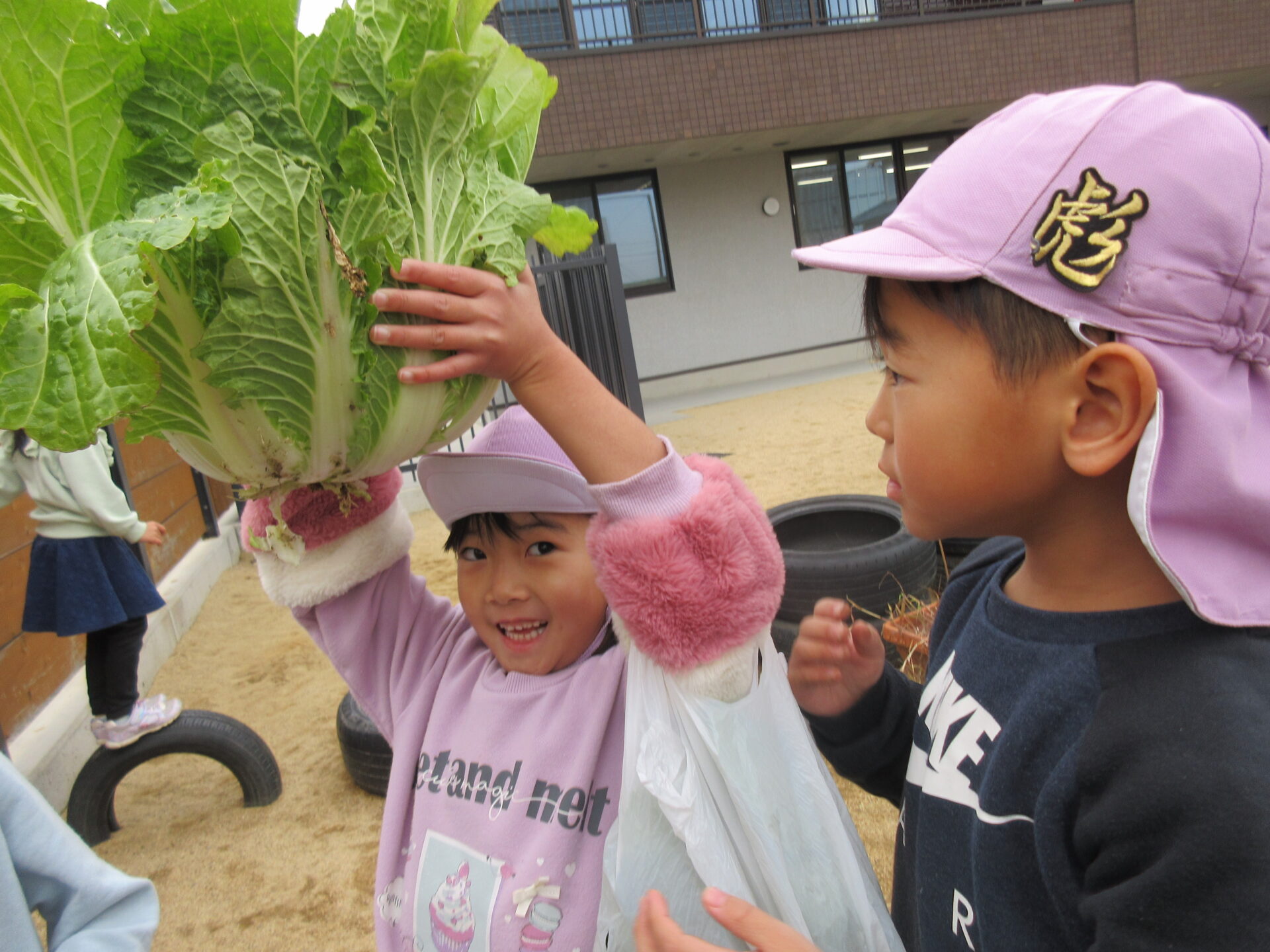 成長をチェックしていた野菜の収穫は、とてもうれしかったようです。